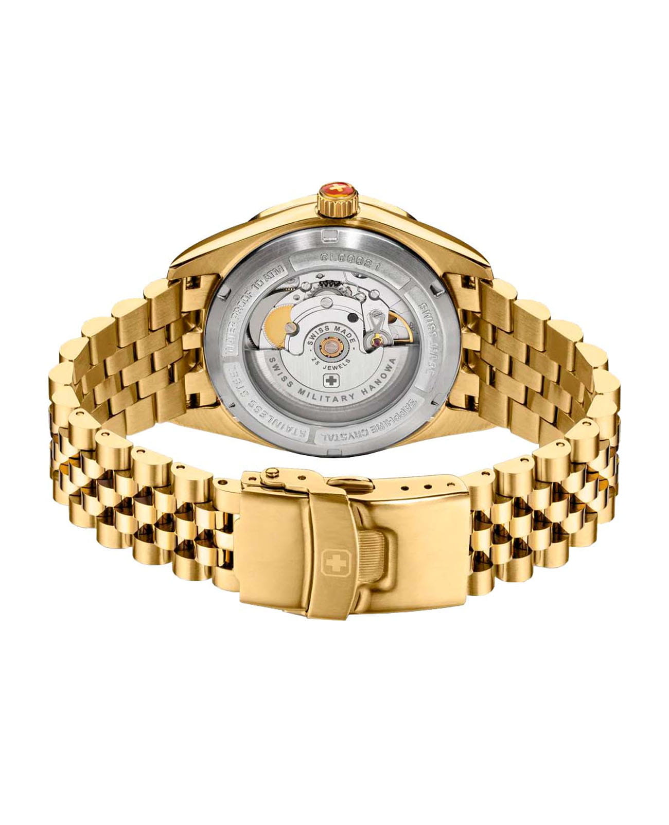 Мужские механические швейцарские часы с автоподзаводом Swiss Military Hanowa Diligenter SMWGL0002110. Сапфировое стеклоСапфировое стеклоПрочный и надёжный материал из кристалла сапфира синтетического происхождения, характеризующийся особой твёрдостью и устойчивостью к царапинам и повреждениям. устойчивое к появлению царапин, обладающее высокой прозрачностью. Корпус из нержавеющей стали с IP-покрытиемIP-покрытиеМетод ионного напыления. Демонстрирует повышенную устойчивость к истиранию, окислению и химическим веществам. Под воздействием высокого давления и температуры около 1500°C молекулы металла надёжно соединяются с частицами корпуса часов.. Стрелки и метки с люминесцентным покрытиемЛюминесцентное покрытиеПозволяет считывать показания времени в темноте. Производители наносят на стрелки, часовые индексы, безель или поверхность циферблата светонакопительный состав, дающий холодное свечение.. Циферблат выполнен по технологии Sunray (солнечные лучи). Окошко даты находится в положении 3 часов. Класс водозащиты: 100 метров, позволит плавать, нырять и заниматься другими водными видами спорта. Стальной браслет с IP-покрытиемIP-покрытиеМетод ионного напыления. Демонстрирует повышенную устойчивость к истиранию, окислению и химическим веществам. Под воздействием высокого давления и температуры около 1500°C молекулы металла надёжно соединяются с частицами корпуса часов. на раскладной застёжкеРаскладная застёжкаТакой тип застёжки используется только на браслетах из металла. Она никогда не раскрывается полностью, происходит разделение на 2 и более частей. Раскладывающая застёжка снизит вероятность потери часов к минимуму..