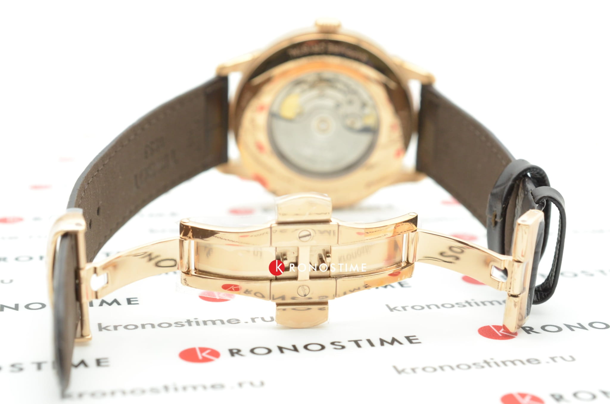 Элегантная модель имеет лаконичный циферблат с узнаваемым узором по окружности, отсутствие лишних деталей благоприятно для отличной считываемости показателей. Корпус из нержавеющей стали имеет PVD-покрытиеPVDУльтратонкое покрытие наносится в технике вакуумного напыления, сочетает в себе нитрид титана особой прочности со слоем золота или оксида хрома. Несёт в себе декоративную или защитную функцию. в цвете розового золота, устойчивое к истиранию. Уникальный калибр Powermatic 80Powermatic 80Эксклюзивный калибр от швейцарской компании ETA с увеличенным запасом хода до 80 часов за счёт удлинённой заводной пружины. Характеризуется улучшенной системой спуска со сниженным трением. с увеличенным запасом хода до 80 часов. Антибликовое покрытие стекла из сапфира. Ремешок из натуральной кожи. . Функции: GMTGMTОтображение времени второго часового пояса.Такая функция особенно актуальна для путешественников и бизнесменов,которые общаются с людьми из разных стран,теперь вы всегда будете знать,какой час у вашего партнёра или близкого человека., календарь. Габариты: 42 x 42 x 12,5 мм.