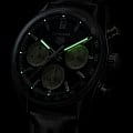 Часы-хронографХронографФункция позволяет измерять отрезки времени с особой точностью: часы, минуты, секунды. Верным признаком хронографа является наличие на циферблате 3 дополнительных окошек-счётчиков.. Механический механизм (автоматический калибр) с высокой точностью. Класс водозащиты: 100 метров, позволит плавать, нырять и заниматься другими водными видами спорта. Стрелки с люминесцентным покрытиемЛюминесцентное покрытиеПозволяет считывать показания времени в темноте. Производители наносят на стрелки, часовые индексы, безель или поверхность циферблата светонакопительный состав, дающий холодное свечение.. Корпус часов изготовлен из нержавеющей стали. Кожаный ремешок с раскладной застёжкойРаскладная застёжкаТакой тип застёжки используется только на браслетах из металла. Она никогда не раскрывается полностью, происходит разделение на 2 и более частей. Раскладывающая застёжка снизит вероятность потери часов к минимуму..