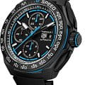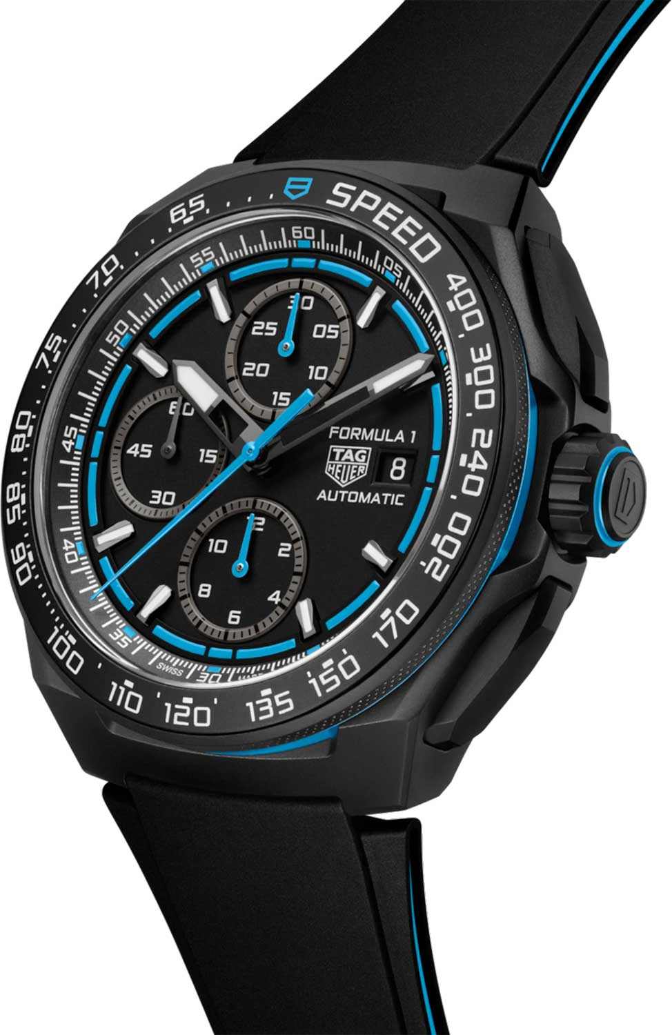 Мужские механические часы TAG Heuer Formula 1 Chronograph CBZ2084.FT8097 — это стильное сочетание элегантности и современного дизайна. Корпус из титана 2-го класса диаметром 44 мм c DLC-покрытиемDLC-покрытиеDiamond like carbon - одно из лучших видов покрытия, представляющее собой углерод с алмазными свойствами. На поверхность материала наносятся распавшиеся молекулы углерода, превращающиеся в плёнку из алмазоподобных связей, которая перенимает твёрдость алмаза. идеально сбалансирован и элегантен. Сапфировое стеклоСапфировое стеклоПрочный и надёжный материал из кристалла сапфира синтетического происхождения, характеризующийся особой твёрдостью и устойчивостью к царапинам и повреждениям. с антибликовым покрытием защищает циферблат от царапин и обеспечивает отличную читаемость при любом освещении. Резиновый ремешок на стандартной застежке идеально дополняют дизайн часов, обеспечивая комфортное ношение. Стрелки и метки на циферблате имеют люминесцентное покрытиеЛюминесцентное покрытиеПозволяет считывать показания времени в темноте. Производители наносят на стрелки, часовые индексы, безель или поверхность циферблата светонакопительный состав, дающий холодное свечение. позволяющее легко определять время даже в темноте. БезельБезельВнешний ободок, закрепляющий стекло. В спортивных часах так называется поворотное кольцо с делениями на циферблате, выполняет роль таймера – замеряет отрезки времени на шкале. Неподвижный безель – элемент декора. Однонаправленно вращающийся безель на дайверских часах позволяет фиксировать моменты погружения и выныривания на поверхность. тахиметраТахиметрРазмеченная шкала, располагается на ободке или безеле часов. Тахиметр позволяет рассчитать скорость на определённом участке пути, расстояние измеряется в километрах или милях. подчёркивает спортивное наследие часов. Часы обладают впечатляющей водонепроницаемостью до 20 бар (200 метров), что делает их идеальными для плавания, ныряния и погружений с аквалангом. Автоматический хронографХронографФункция позволяет измерять отрезки времени с особой точностью: часы, минуты, секунды. Верным признаком хронографа является наличие на циферблате 3 дополнительных окошек-счётчиков. обеспечивает точное измерение времени на каждом круге. Запас хода до 42 часов. Завинчивающаяся задняя крышка украшена специальным узором «клетка». Прочная конструкция часов и высокопроизводительный механизм делают их идеальным спутником для любителей гонок.