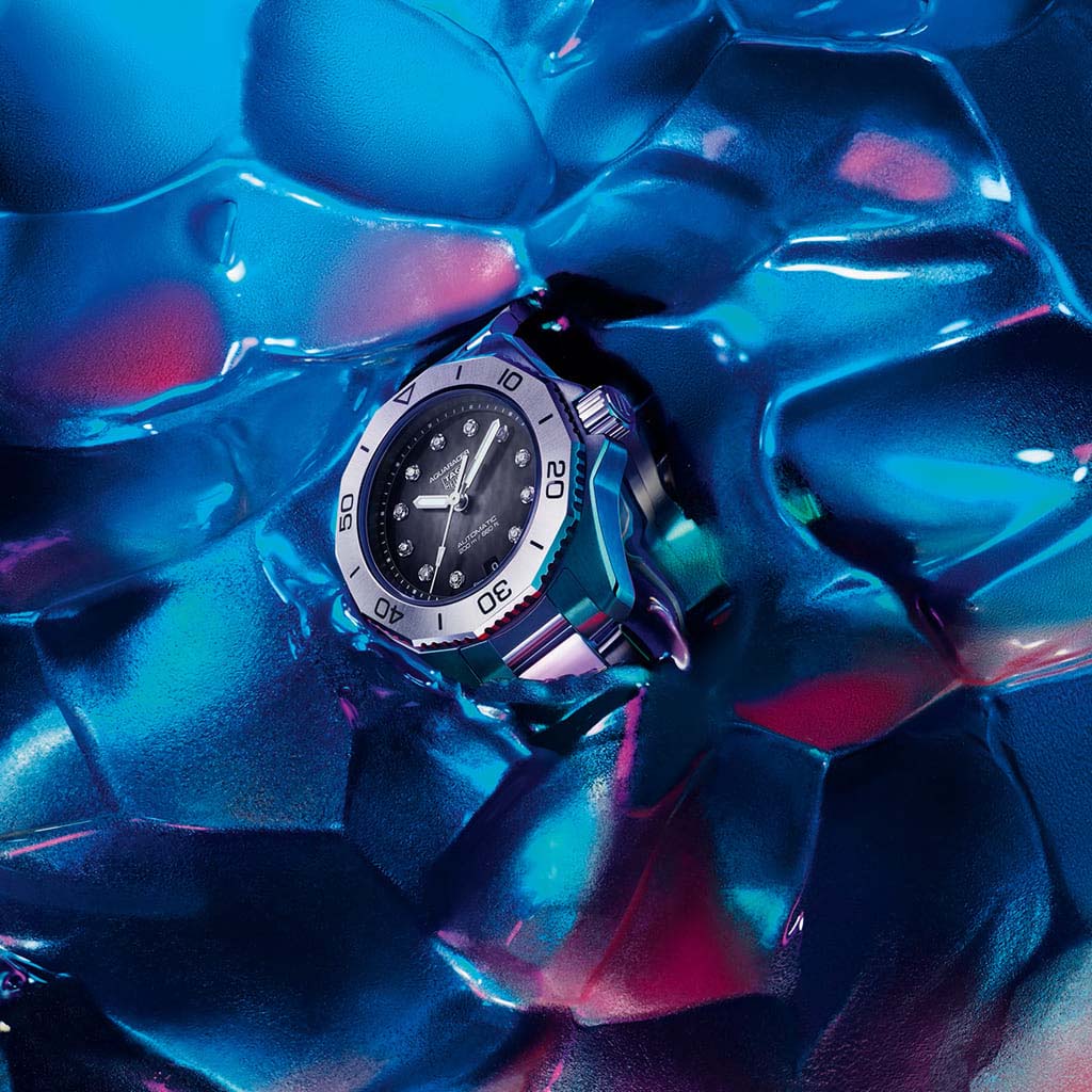 Женские механические швейцарские часы TAG Heuer Aquaracer Professional 200 WBP2410.BA0622, механический механизм (автоматический калибр) с высокой точностью. Сапфировое стеклоСапфировое стеклоПрочный и надёжный материал из кристалла сапфира синтетического происхождения, характеризующийся особой твёрдостью и устойчивостью к царапинам и повреждениям. устойчивое к появлению царапин, обладающее высокой прозрачностью. Класс водозащиты: 200 метров, позволит плавать, нырять и заниматься другими водными видами спорта. Корпус часов изготовлен из стали. Стальной браслет на раскладной застёжкеРаскладная застёжкаТакой тип застёжки используется только на браслетах из металла. Она никогда не раскрывается полностью, происходит разделение на 2 и более частей. Раскладывающая застёжка снизит вероятность потери часов к минимуму. обеспечивает максимальный комфорт при использовании благодаря тонкому, клиновидному дизайну и дополнительному раскладывающемуся звену. Дымчато-черный циферблат из перламутра поражает воображение, а 11 эффектных бриллиантов VS классической огранки диаметром 1,40 мм (0,107 карата) выводят стиль на новый уровень совершенства.