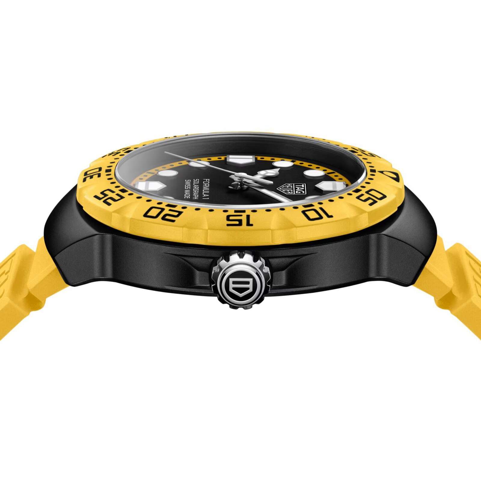Мужские кварцевые часы TAG Heuer Formula 1 Solargraph WBY1117.FT8087 — это стильное сочетание элегантности и современного дизайна. Эти часы ограниченной серии с калибром TH50-00, в котором реализована технология Solargraph, адресованы тем, кто ценит авангардные инновации как в форме, так и в функциях. Корпус из нержавеющей стали с DLC-покрытиемDLC-покрытиеDiamond like carbon - одно из лучших видов покрытия, представляющее собой углерод с алмазными свойствами. На поверхность материала наносятся распавшиеся молекулы углерода, превращающиеся в плёнку из алмазоподобных связей, которая перенимает твёрдость алмаза. диаметром 38 мм идеально сбалансирован и элегантен. Сапфировое стеклоСапфировое стеклоПрочный и надёжный материал из кристалла сапфира синтетического происхождения, характеризующийся особой твёрдостью и устойчивостью к царапинам и повреждениям. с антибликовым покрытием защищает циферблат от царапин и обеспечивает отличную читаемость при любом освещении. Резиновый ремешок на стандартной застежке идеально дополняют дизайн часов, обеспечивая комфортное ношение. Стрелки и метки на циферблате имеют люминесцентное покрытиеЛюминесцентное покрытиеПозволяет считывать показания времени в темноте. Производители наносят на стрелки, часовые индексы, безель или поверхность циферблата светонакопительный состав, дающий холодное свечение. позволяющее легко определять время даже в темноте. БезельБезельВнешний ободок, закрепляющий стекло. В спортивных часах так называется поворотное кольцо с делениями на циферблате, выполняет роль таймера – замеряет отрезки времени на шкале. Неподвижный безель – элемент декора. Однонаправленно вращающийся безель на дайверских часах позволяет фиксировать моменты погружения и выныривания на поверхность. из запатентованной биополимерной смолы TH-Polylight, которая делает часы лёгкими и прочными. Часы обладают впечатляющей водонепроницаемостью до 10 бар (100 метров), что делает их идеальными для плавания, ныряния и погружений с аквалангом.