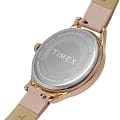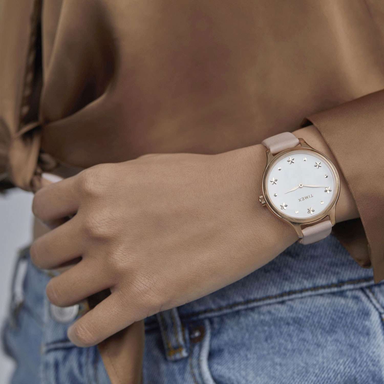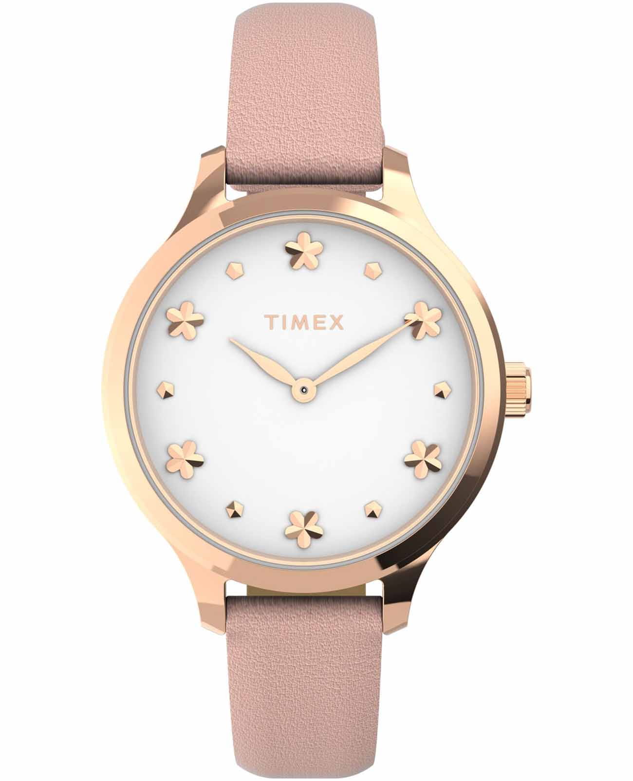 Изысканные часы Timex TW2V23700 станут прекрасным дополнением вашего образа и подчеркнут вашу индивидуальность. Эти часы, разработанные в США, сочетают в себе элегантность и современные технологии. Корпус часов выполнен из латуни с розовым PVDPVDУльтратонкое покрытие наносится в технике вакуумного напыления, сочетает в себе нитрид титана особой прочности со слоем золота или оксида хрома. Несёт в себе декоративную или защитную функцию. покрытием, что придаёт им утончённый и стильный вид. Белый циферблат сдержанного дизайна украшен метками в виде точек и цветков, что добавляет часам особого шарма. Листовидные стрелки в стиле Feuille подчёркивают изящество дизайна, а отсутствие секундной стрелки делает облик часов ещё более минималистичным. Часы оснащены надёжным кварцевым механизмом, который обеспечивает точный ход и долговечность. Минеральное стеклоМинеральное стеклоМинеральное стекло представляет собой искусственно выращенный минерал кварца. Такое стекло отличается особой устойчивостью к повреждениям и царапинам. Уступает по некоторым качествам сапфировому стеклу. защищает циферблат от царапин и повреждений, сохраняя его первозданный вид на протяжении долгого времени. Рифлёная заводная головка добавляет удобства в использовании. Водозащита 30WR позволяет не беспокоиться о случайных брызгах воды, делая эти часы подходящими для повседневного ношения. Удобный кожаный ремешок с классической застежкой обеспечивает комфорт и надёжность, прекрасно дополняя общий дизайн часов. С диаметром корпуса 36 мм и шириной ремешка 14 мм, эти часы идеально подходят для изящного запястья, становясь акцентом любого наряда. Эти часы — отличный выбор для тех, кто ищет стильный и функциональный аксессуар.