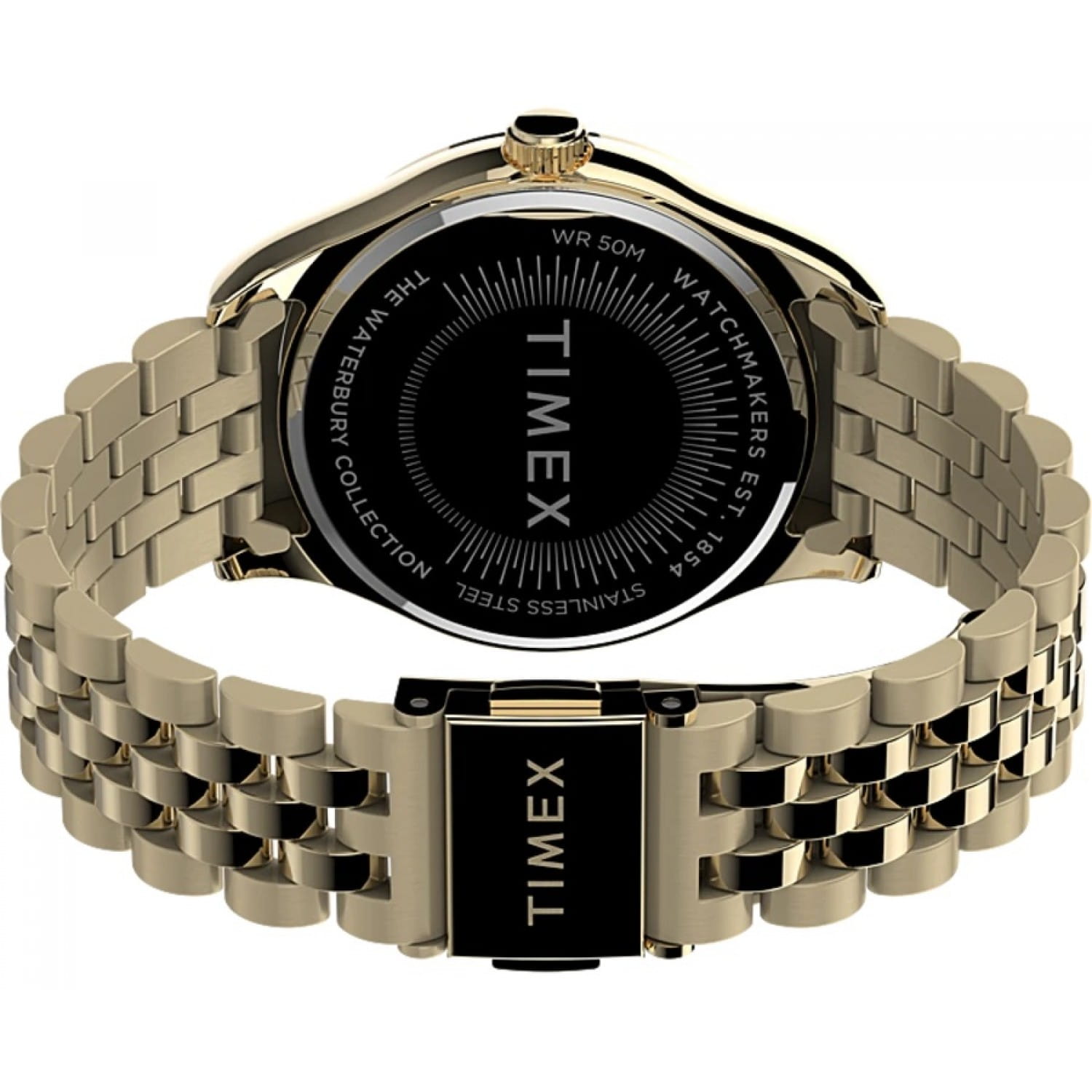 Часы Timex TW2V45500 из коллекции Waterbury Legacy — это элегантный женский аксессуар, который сочетает классический дизайн и современные технологии. Корпус диаметром 34 мм и браслет выполнены из нержавеющей стали с золотистым PVD-покрытиемPVDУльтратонкое покрытие наносится в технике вакуумного напыления, сочетает в себе нитрид титана особой прочности со слоем золота или оксида хрома. Несёт в себе декоративную или защитную функцию., что придаёт часам изысканный вид. Зелёный циферблат с римскими цифрами и стрелками защищён минеральным стекломМинеральное стеклоМинеральное стекло представляет собой искусственно выращенный минерал кварца. Такое стекло отличается особой устойчивостью к повреждениям и царапинам. Уступает по некоторым качествам сапфировому стеклу., устойчивым к царапинам, а так же украшен кристаллами.