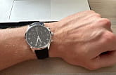 Модель сочетает в себе классические элементы и динамичные черты. Аксессуар относится к числу самых больших хронографов - диаметр корпуса составляет 45 мм. Элегантный ремешок выполнен из натуральной кожи, он надёжно крепится на руке, застёжка препятствует случайному расстёгиванию. Кварцевый механизм ETA G10.212. Сапфировое стекло. Водонепроницаемость до 10 бар. Габариты: 45 x 45 x 11 мм.