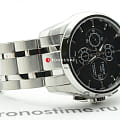 Швейцарские наручные часы оснащены автоматическим калибром ETA C01.211 с запасом хода 45 часов. Брендовый хронографХронографФункция позволяет измерять отрезки времени с особой точностью: часы, минуты, секунды. Верным признаком хронографа является наличие на циферблате 3 дополнительных окошек-счётчиков. с крупным стальным браслетом и чёрным циферблатом привнесёт в образ респектабельность и поможет создать солидный имидж, это идеальный вариант на подарок руководителю крупной компании. Скелетонизированная задняя крышка приглашает понаблюдать за движением деталей механизма. Водонепроницаемость при давлении 10 бар на глубине 100 метров. Опции: дата, секундомер, тахиметрТахиметрРазмеченная шкала, располагается на ободке или безеле часов. Тахиметр позволяет рассчитать скорость на определённом участке пути, расстояние измеряется в километрах или милях.. . Габариты: 43 x 43 x 14,8 мм.