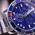 Дайверские часы отличаются повышенным уровнем водостойкости, герметичность сохраняется при давлении 30 бар на глубине 300 метров. Этому дополнительно способствуют заводная головка с завинчивающейся системой. Стекло из сапфира с антибликовым слоем невозможно поцарапать. Кварцевый калибр ETA G10.212. Люминесцентная подсветкаЛюминесцентное покрытиеПозволяет считывать показания времени в темноте. Производители наносят на стрелки, часовые индексы, безель или поверхность циферблата светонакопительный состав, дающий холодное свечение.. ХронографХронографФункция позволяет измерять отрезки времени с особой точностью: часы, минуты, секунды. Верным признаком хронографа является наличие на циферблате 3 дополнительных окошек-счётчиков., секундомер, календарь. Застёжка с удлинением для дайверского костюмаУдлинение для дайверовЗастёжка с удлинением для дайверов представляет собой безопасное крепление, которое позволяет надевать часы поверх гидрокостюма. Гибкая застёжка удлиняется на 1-2 миллиметра.. Габариты: 45 x 45 x 12,8 мм.