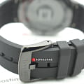 Аксессуар динамичного характера имеет необычный фактурный циферблат, дополненный 3 чёрными счётчиками хронографаХронографФункция позволяет измерять отрезки времени с особой точностью: часы, минуты, секунды. Верным признаком хронографа является наличие на циферблате 3 дополнительных окошек-счётчиков.. Часы отражают любовь к велоспорту, кнопка включения хронографа напоминает о рукоятке тормоза. Задняя крышка корпуса имеет оригинальную гравировку. Часы комплектуются швейцарским кварцевым калибром ETA G10.212. Корпус с чёрным PVD-покрытиемPVDУльтратонкое покрытие наносится в технике вакуумного напыления, сочетает в себе нитрид титана особой прочности со слоем золота или оксида хрома. Несёт в себе декоративную или защитную функцию.. Прочное сапфировое стекло. Гибкий силиконовый ремешок. Отображение числа, секундомер, тахиметрТахиметрРазмеченная шкала, располагается на ободке или безеле часов. Тахиметр позволяет рассчитать скорость на определённом участке пути, расстояние измеряется в километрах или милях.. Габариты: 44,5 x 44,5 x 11,4 мм.