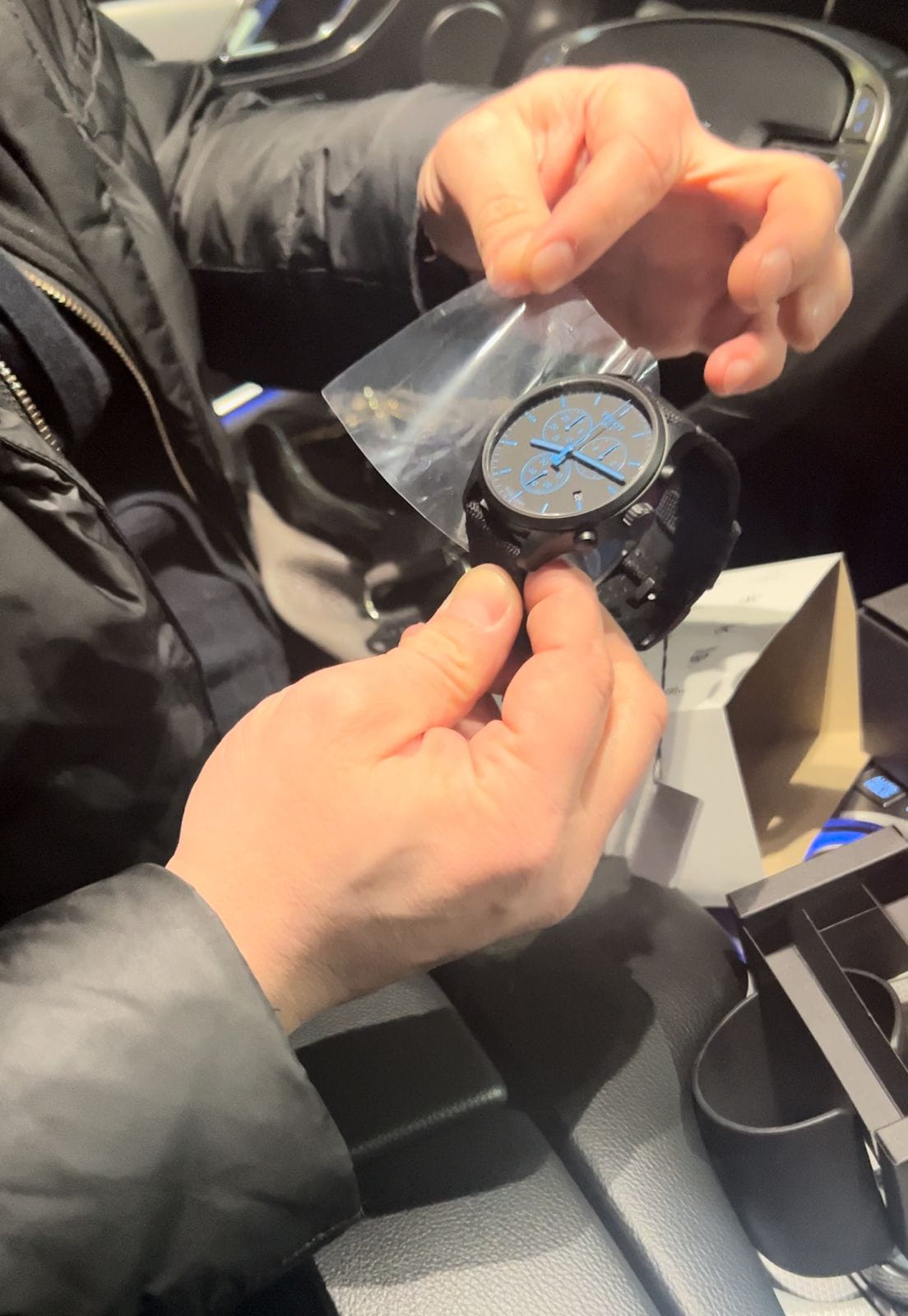 На задней крышке, как и положено приличным часами, выбить название, модель и номер самих часов. Работают часы от батарейки, необходимости в заводе соответственно нет. Точность хода просто идеальная. На руке смотрятся очень красиво