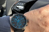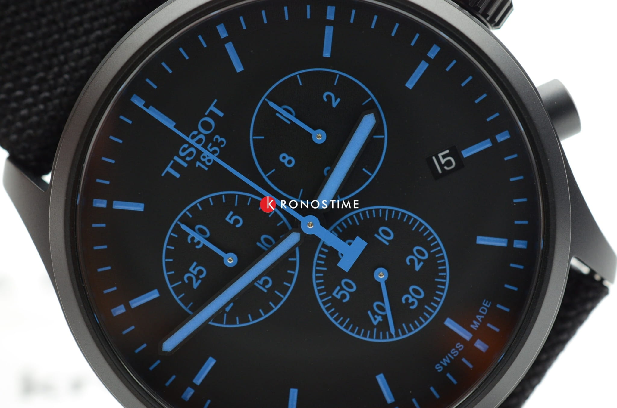 Брендовая модель станет лучшим дополнением к повседневному образу, стильно смотрится лаконичный чёрный циферблат с голубым оформлением. Плотный тканевый ремешок дарует лёгкость и обеспечивает комфортное ношение. Высокая точность хода достигается благодаря кварцевому механизму ETA G10.212. Сапфировое стекло устойчиво к возникновению царапин. Водонепроницаемость при давлении 10 бар. Чёрное PVD-покрытиеPVDУльтратонкое покрытие наносится в технике вакуумного напыления, сочетает в себе нитрид титана особой прочности со слоем золота или оксида хрома. Несёт в себе декоративную или защитную функцию. корпуса. Секундомер, хронографХронографФункция позволяет измерять отрезки времени с особой точностью: часы, минуты, секунды. Верным признаком хронографа является наличие на циферблате 3 дополнительных окошек-счётчиков., апертура даты. Габариты: 45 x 45 x 11 мм.