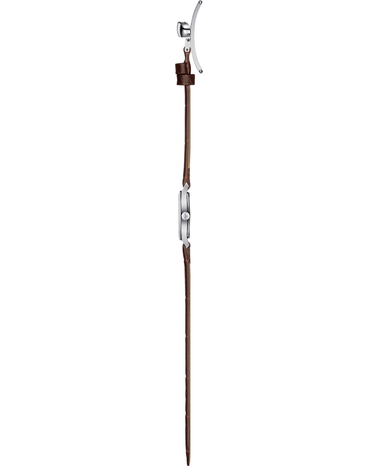 Лаконичная модель поможет гармонично завершить повседневный или деловой образ, станет отличным вариантом для дополнения вечернего наряда. Ремешок из натуральной коровьей кожи с тиснением под кожу крокодила стильно смотрится на запястье. Часы работают за счёт кварцевого калибра ETA E61.031 с 8 камнями. Сапфировое стекло. Нержавеющая сталь для изготовления корпуса и браслета. Габариты: 25 x 25 x 5,15 мм.