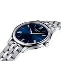 Синий циферблат, дополненный винтажными римскими цифрами, идеально смотрится в сочетании с серебристым отливом корпуса (самый тонкий из всех аксессуаров Tissot - толщина 5,5 мм) из нержавеющей стали 316L. Лаконичное оформление. Кварцевый высокоточный механизм ETA E61.031. Сапфировое стекло невозможно поцарапать. Водостойкость при давлении 3 бар. . Габариты: 31 x 31 x 5,5 мм.