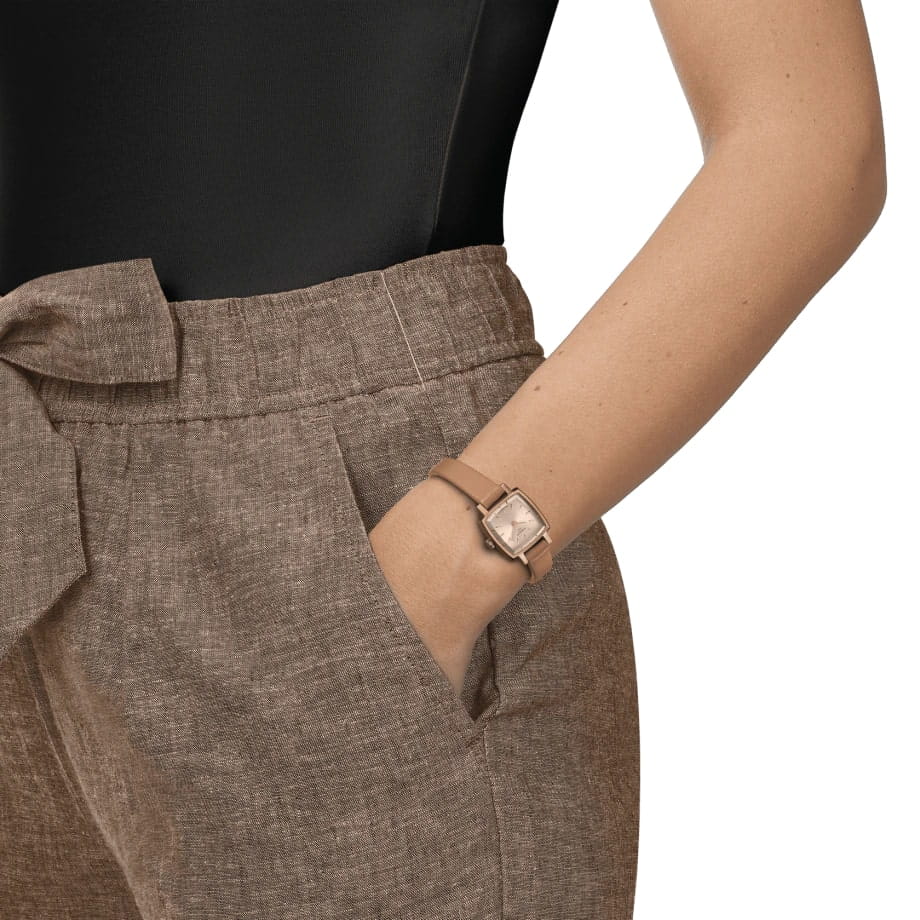 Комплект с 4-мя ремешками. Квадратный корпус наделяет швейцарские наручные часы оригинальным обликом. Он имеет износоустойчивое PVD-покрытиеPVDУльтратонкое покрытие наносится в технике вакуумного напыления, сочетает в себе нитрид титана особой прочности со слоем золота или оксида хрома. Несёт в себе декоративную или защитную функцию. цвета розового золота. Ничто не отвлекает от считывания показаний времени благодаря минималистичному циферблату. Узнаваемый дизайн. Кварцевый высокоточный калибр ETA 901.001. Сапфировое стеклоСапфировое стеклоПрочный и надёжный материал из кристалла сапфира синтетического происхождения, характеризующийся особой твёрдостью и устойчивостью к царапинам и повреждениям.. Фирменный узор в виде цветка на задней крышке. Ремешок из натуральной кожи. Габариты: 20 x 20 x 7,1 мм.