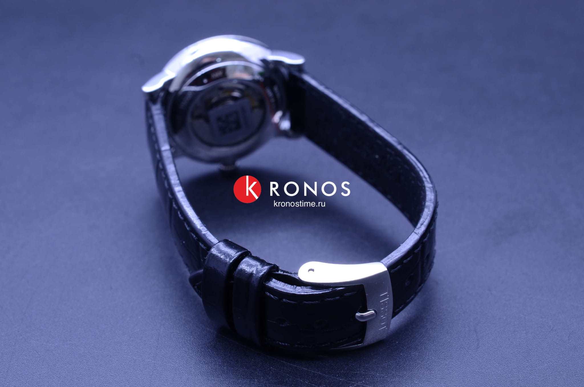 Изяществом привлекает минималистичным циферблатом с римскими цифрами, ярким элементом стали синие стрелки. Классическое исполнение модели придётся по душе девушкам, желающим приобрести универсальный аксессуар на все случаи жизни. Это часы с автоматической системой завода от движений руки владелицы, они оснащены швейцарским автоматическим механизмом ETA 2671 с запасом хода до 38 часов. Движение деталей можно просматривать через прозрачную заднюю крышку. Гладкий стальной безельБезельВнешний ободок, закрепляющий стекло. В спортивных часах так называется поворотное кольцо с делениями на циферблате, выполняет роль таймера – замеряет отрезки времени на шкале. Неподвижный безель – элемент декора. Однонаправленно вращающийся безель на дайверских часах позволяет фиксировать моменты погружения и выныривания на поверхность. удерживает сапфировое стекло, устойчивое к царапинам. Чёрный ремешок из натуральной опойковой кожи имеет тиснение под кожу крокодила. Степень водостойкости - WR 50. Габариты: 30 x 30 x 9,5 мм.