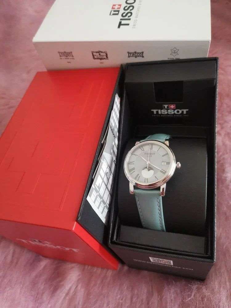 Женские швейцарские часы Tissot Carson Premium Lady Moonphase T122.223.16.353.00, кварцевый высокоточный механизм F05.841 с индикатором заряда батареи EOL.