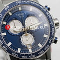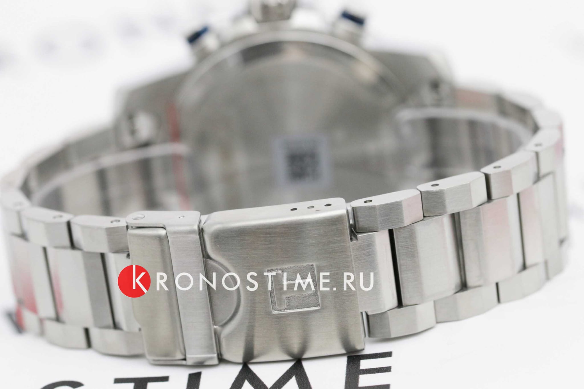 Современный хронографХронографФункция позволяет измерять отрезки времени с особой точностью: часы, минуты, секунды. Верным признаком хронографа является наличие на циферблате 3 дополнительных окошек-счётчиков. поможет подчеркнуть продуманный образ делового мужчины. Модель выполнена в спокойной серебристо-синей расцветке. Наручные часы функционируют благодаря швейцарскому кварцевому механизму. Калибр отличается максимальной точностью хода. Водостойкость 100 метров. Надёжный корпус из антикоррозионной стали 316L. Люминесцентная подсветкаЛюминесцентное покрытиеПозволяет считывать показания времени в темноте. Производители наносят на стрелки, часовые индексы, безель или поверхность циферблата светонакопительный состав, дающий холодное свечение. стрелок и индексов. Отображение даты. Диаметр корпуса: 45,5 мм.