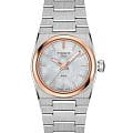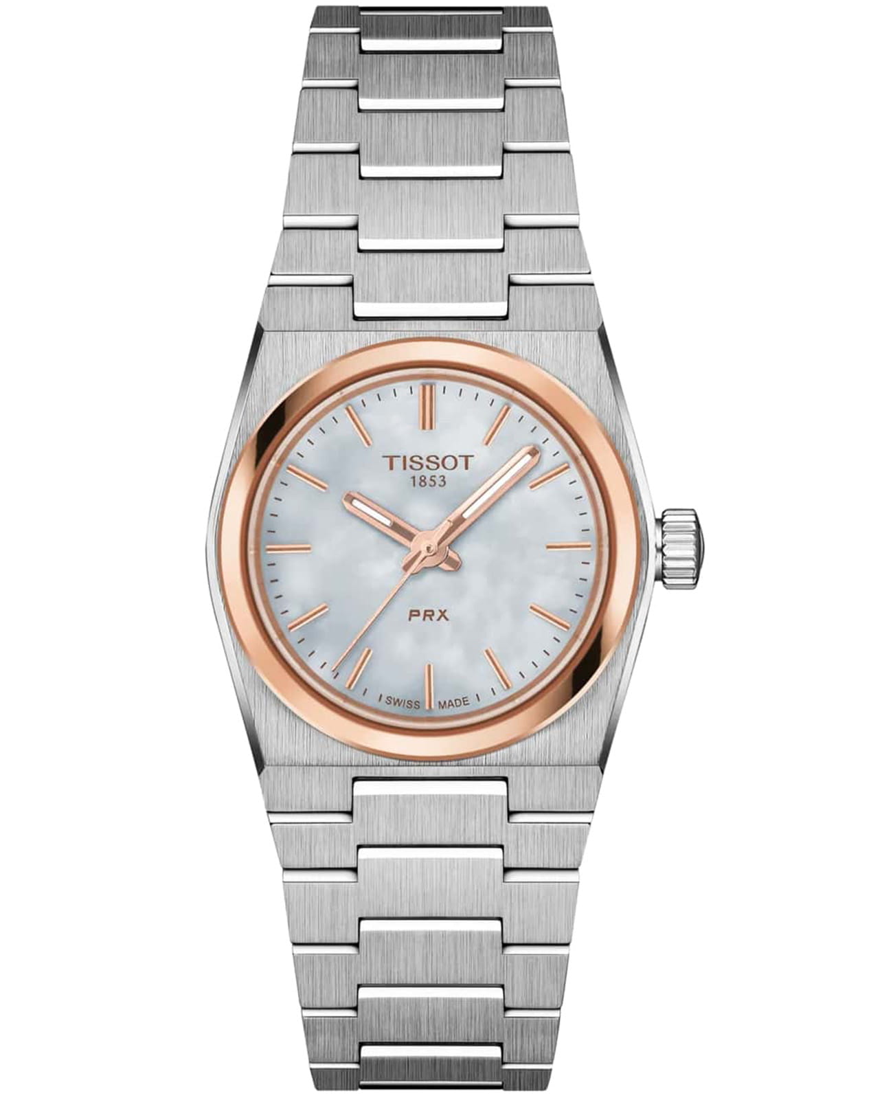 Часы Tissot PRX 25 мм T137.010.21.111.00 сочетают элегантный дизайн с современными технологиями. Корпус диаметром 25 мм выполнен из нержавеющей стали 316L, а безель имеет PVD-покрытиеPVDУльтратонкое покрытие наносится в технике вакуумного напыления, сочетает в себе нитрид титана особой прочности со слоем золота или оксида хрома. Несёт в себе декоративную или защитную функцию. розового золота, придающее часам изысканный вид. Циферблат из белого перламутра защищён сапфировым стекломСапфировое стеклоПрочный и надёжный материал из кристалла сапфира синтетического происхождения, характеризующийся особой твёрдостью и устойчивостью к царапинам и повреждениям., устойчивым к царапинам.