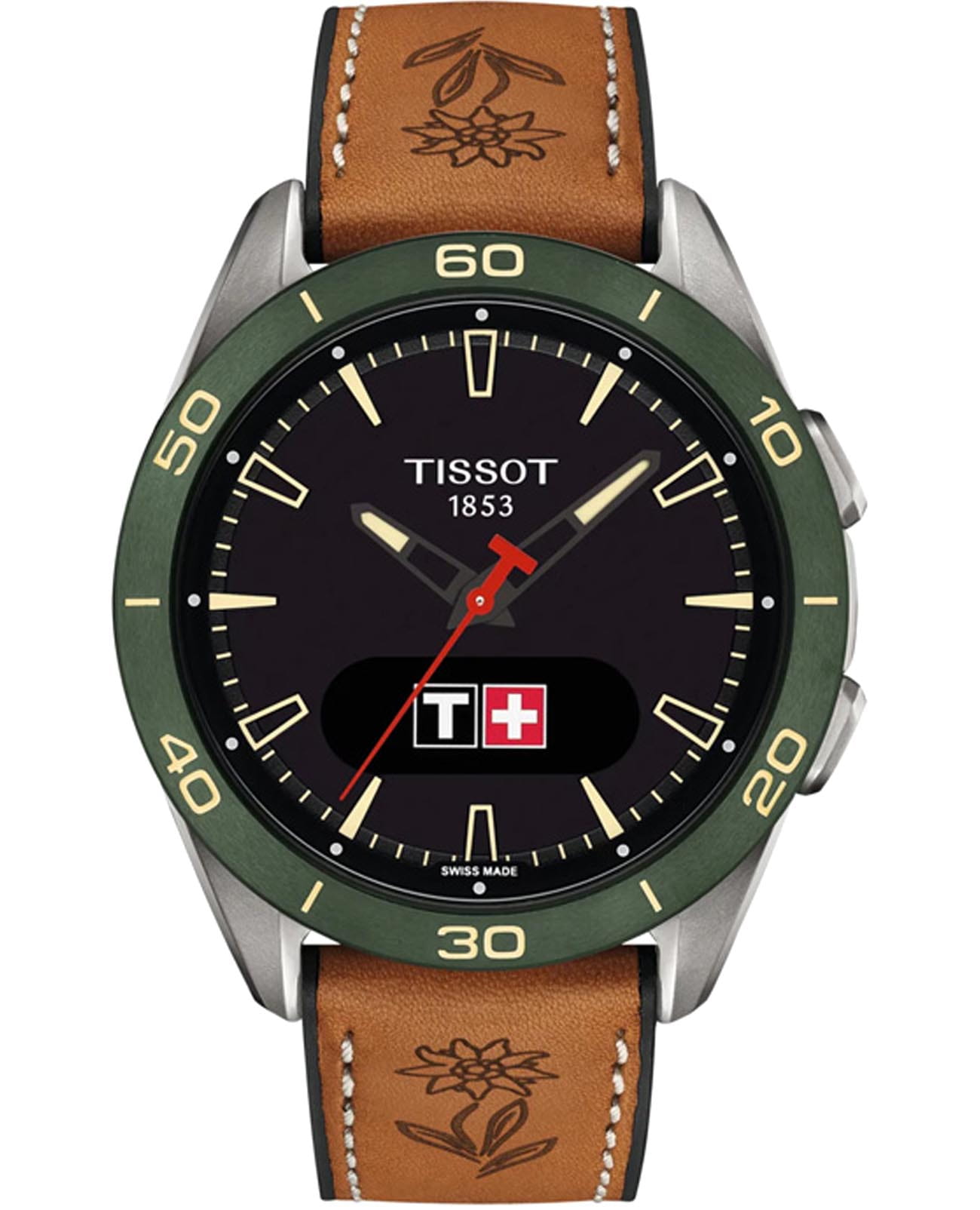 Модель Tissot T-Touch Connect Sport ESAF T153.420.47.051.07 сочетающая швейцарское мастерство и современные технологии, заключена в 43-миллиметровый титановый корпус и оснащена сенсорным экраном AMOLED, что обеспечивает соответствие функциональности и стиля. Отслеживая частоту сердечных сокращений, пройденное расстояние, скорость и количество потраченных калорий, эти часы обеспечивают своевременное получение уведомлений о вашем активном образе жизни. Благодаря специальному приложению вы сможете глубже изучить показатели своей работы, тенденции и самочувствие. Сапфировое стеклоСапфировое стеклоПрочный и надёжный материал из кристалла сапфира синтетического происхождения, характеризующийся особой твёрдостью и устойчивостью к царапинам и повреждениям. устойчивое к появлению царапин, обладающее высокой прозрачностью. Приводимые в действие солнечной энергией и системой SwALPS, они обеспечивают длительное использование без необходимости частой подзарядки. Время автономной работы в режиме часов практически бесконечно, а при различных режимах подключения - несколько месяцев. Керамический безельБезельВнешний ободок, закрепляющий стекло. В спортивных часах так называется поворотное кольцо с делениями на циферблате, выполняет роль таймера – замеряет отрезки времени на шкале. Неподвижный безель – элемент декора. Однонаправленно вращающийся безель на дайверских часах позволяет фиксировать моменты погружения и выныривания на поверхность. зеленого цвета. Кожаный ремешок на стандартной застёжке обеспечивает комфортное ношение. Класс водозащиты: 50 метров, позволит плавать, нырять и заниматься другими водными видами спорта. Tissot T-Touch Connect Sport сокращает разрыв между традиционным швейцарским часовым искусством и практичной функциональностью, что делает его идеальным решением для тех, кто следит за модой.