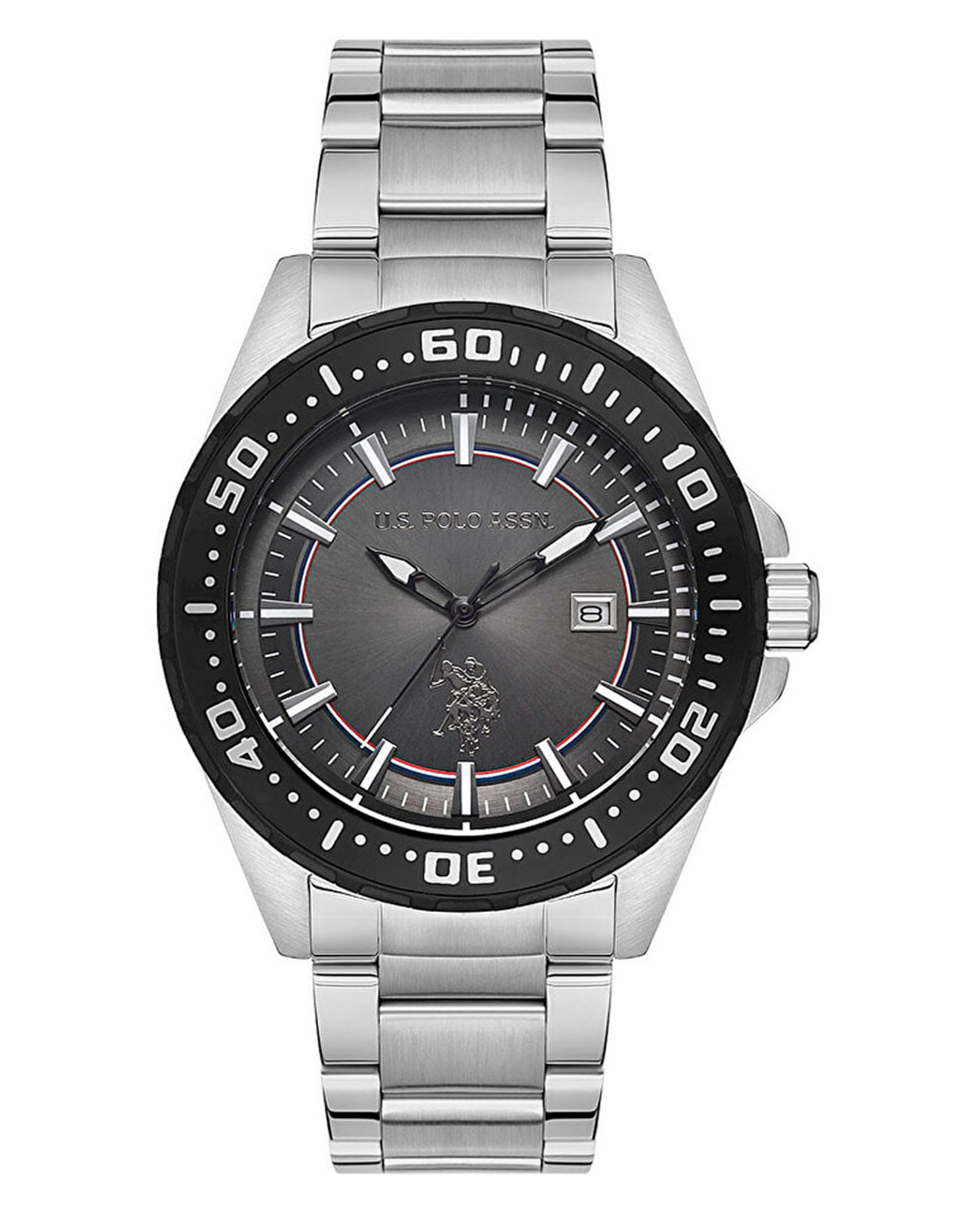 Мужские часы U.S. Polo Assn. Crossing USPA1041-08, кварцевый механизм с высокой точностью. Минеральное стеклоМинеральное стеклоМинеральное стекло представляет собой искусственно выращенный минерал кварца. Такое стекло отличается особой устойчивостью к повреждениям и царапинам. Уступает по некоторым качествам сапфировому стеклу. устойчивое к появлению царапин, обладающее высокой прозрачностью. Центральные часовая, минутная и секундная стрелки. Индикация даты и дня недели. 12/24х часовой формат времени. Корпус и браслет изготовлены из нержавеющей стали. БезельБезельВнешний ободок, закрепляющий стекло. В спортивных часах так называется поворотное кольцо с делениями на циферблате, выполняет роль таймера – замеряет отрезки времени на шкале. Неподвижный безель – элемент декора. Однонаправленно вращающийся безель на дайверских часах позволяет фиксировать моменты погружения и выныривания на поверхность. из нержавеющей стали с IP-покрытиемIP-покрытиеМетод ионного напыления. Демонстрирует повышенную устойчивость к истиранию, окислению и химическим веществам. Под воздействием высокого давления и температуры около 1500°C молекулы металла надёжно соединяются с частицами корпуса часов.. Стрелки и метки с люминесцентным покрытиемЛюминесцентное покрытиеПозволяет считывать показания времени в темноте. Производители наносят на стрелки, часовые индексы, безель или поверхность циферблата светонакопительный состав, дающий холодное свечение.. Окошко даты в положении 3 часов. Класс водозащиты: 50 метров, позволит защитить корпус от случайных брызг или капель дождя. Стальной браслет на застёжке «бабочка» с кнопкамиЗастёжка "бабочка"Такой вид застёжки дополняется предохранителями, помогающими избежать случайного раскрытия браслета. Обладают изящным исполнением. .