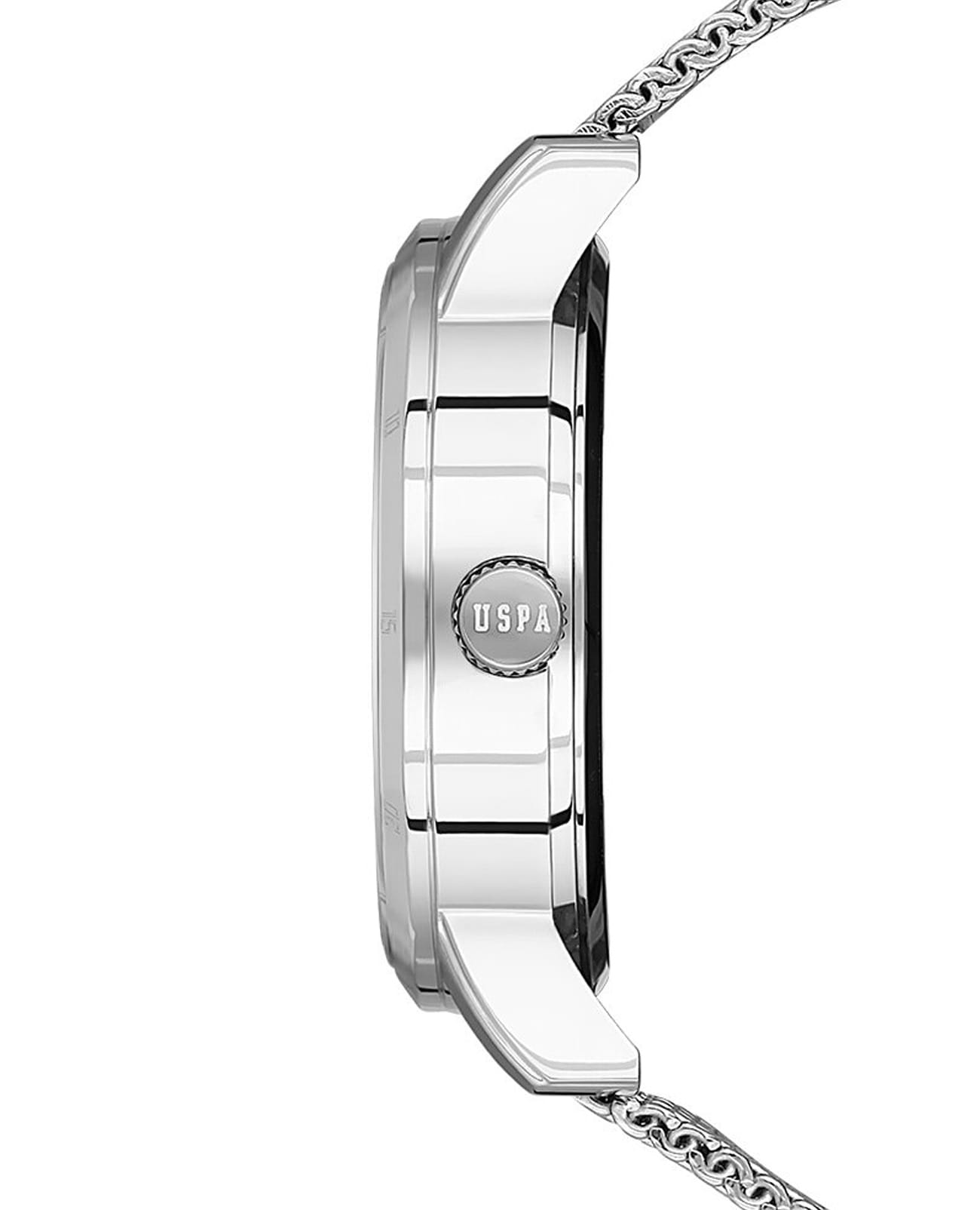 Мужские часы с тахиметромТахиметрРазмеченная шкала, располагается на ободке или безеле часов. Тахиметр позволяет рассчитать скорость на определённом участке пути, расстояние измеряется в километрах или милях. U.S. Polo Assn Fundamental USPA1075-01, кварцевый механизм с высокой точностью. Минеральное стеклоМинеральное стеклоМинеральное стекло представляет собой искусственно выращенный минерал кварца. Такое стекло отличается особой устойчивостью к повреждениям и царапинам. Уступает по некоторым качествам сапфировому стеклу. устойчивое к появлению царапин, обладающее высокой прозрачностью. Корпус изготовлен из нержавеющей стали. Центральные часовая, минутная и секундная стрелки. 24-х часовой формат времени, окошко даты и дня недели вынесены на отдельный циферблат. Стрелки с люминесцентным покрытиемЛюминесцентное покрытиеПозволяет считывать показания времени в темноте. Производители наносят на стрелки, часовые индексы, безель или поверхность циферблата светонакопительный состав, дающий холодное свечение.. Класс водозащиты: 50 метров, позволит защитить корпус от случайных брызг или капель дождя. Стальной браслет миланского плетения на раскладном замкеРаскладной замокДанный вариант застежки используется только на часах с металлическим браслетом. Отличительная особенность такого крепления в том, что длина браслета становится универсальной и вы можете самостоятельно отрегулировать нужный вам размер – застежка просто двигается по браслету часов..