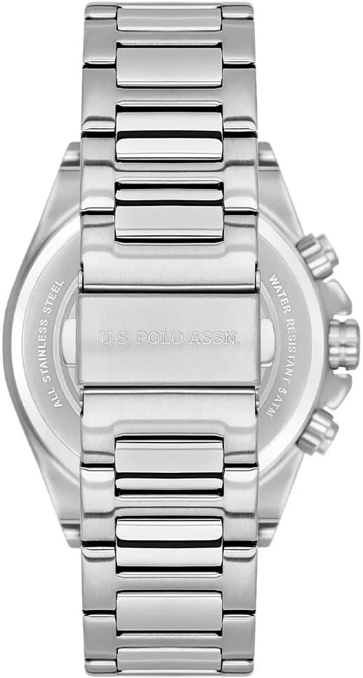 Мужские элегантные американские часы U.S. Polo Assn. Crossing USPA1079-05 обладают кварцевым механизмом с высокой точностью. Минеральное стеклоМинеральное стеклоМинеральное стекло представляет собой искусственно выращенный минерал кварца. Такое стекло отличается особой устойчивостью к повреждениям и царапинам. Уступает по некоторым качествам сапфировому стеклу. устойчивое к появлению царапин, обладающее высокой прозрачностью. Изысканный корпус изготовлен из нержавеющей стали. Серебристые центральные часовая, минутная и секундная стрелки. 24-х часовой формат времени, дата и день недели вынесены на отдельный циферблат. Класс водозащиты: 50 метров, позволит защитить корпус от случайных брызг или капель дождя. Стальной браслет с раскладной застёжкойРаскладная застёжкаТакой тип застёжки используется только на браслетах из металла. Она никогда не раскрывается полностью, происходит разделение на 2 и более частей. Раскладывающая застёжка снизит вероятность потери часов к минимуму. обеспечивает комфорт и удобство в использовании, добавляя завершающий штрих к этому стильному и высокоэффективному аксессуару. Оригинальная модель с классическим оформлением станет превосходным завершением образа, наделив его индивидуальным характером.