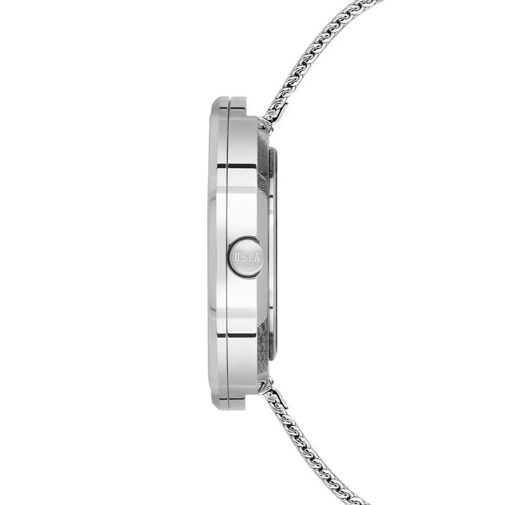 Мужские изысканные американские часы U.S. Polo Assn. Fundamental USPA1088-01 обладают кварцевым механизмом с высокой точностью. Минеральное стеклоМинеральное стеклоМинеральное стекло представляет собой искусственно выращенный минерал кварца. Такое стекло отличается особой устойчивостью к повреждениям и царапинам. Уступает по некоторым качествам сапфировому стеклу. устойчивое к появлению царапин, обладающее высокой прозрачностью. Изысканный корпус изготовлен из нержавеющей стали. Стильные часы с необычными стрелками, выполненными в виде клюшек для конного поло. Класс водозащиты: 50 метров, позволит защитить корпус от случайных брызг или капель дождя. Стальной браслет миланского плетения с раскладным замкомРаскладной замокДанный вариант застежки используется только на часах с металлическим браслетом. Отличительная особенность такого крепления в том, что длина браслета становится универсальной и вы можете самостоятельно отрегулировать нужный вам размер – застежка просто двигается по браслету часов. обеспечивает комфорт и удобство в использовании, добавляя завершающий штрих к этому стильному аксессуару. Это практичный и стильный инструмент для активной повседневности, объединяющий точный механизм и удобство. Оригинальная модель станет превосходным завершением образа, наделив его индивидуальным характером.