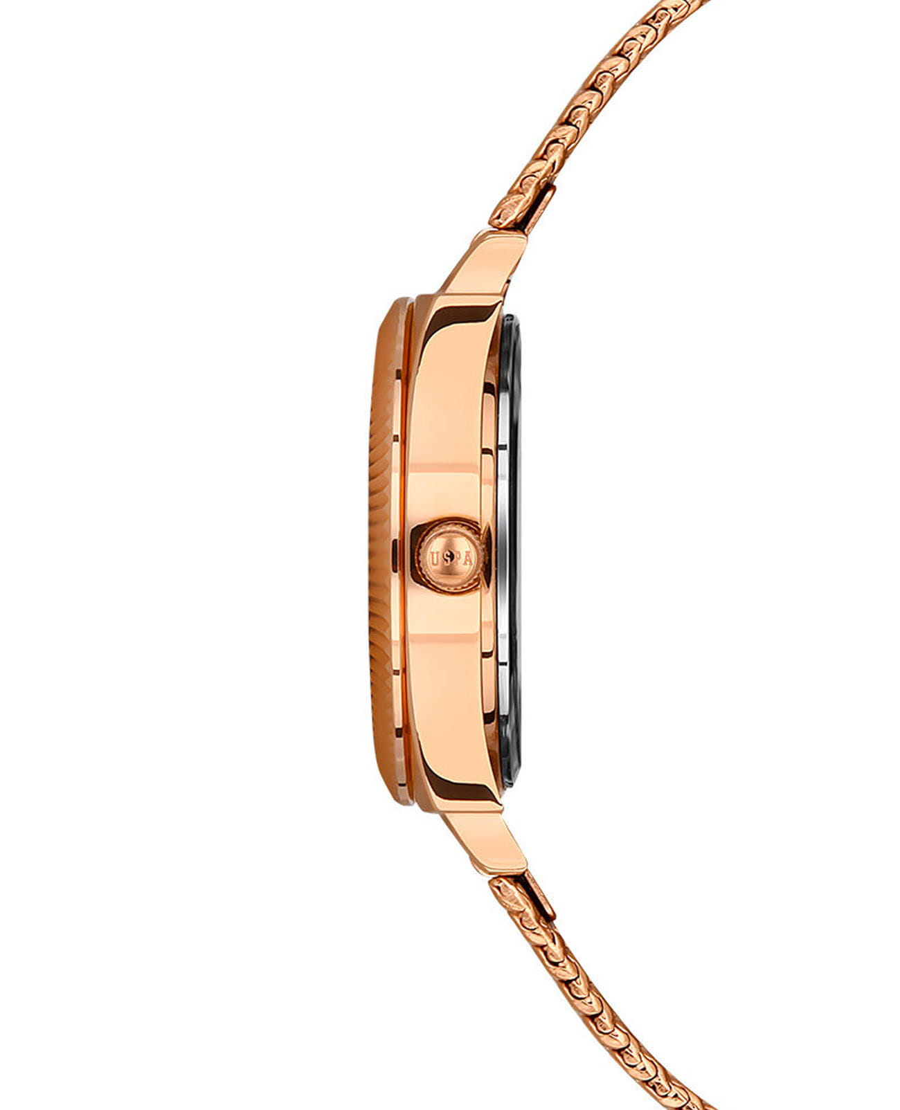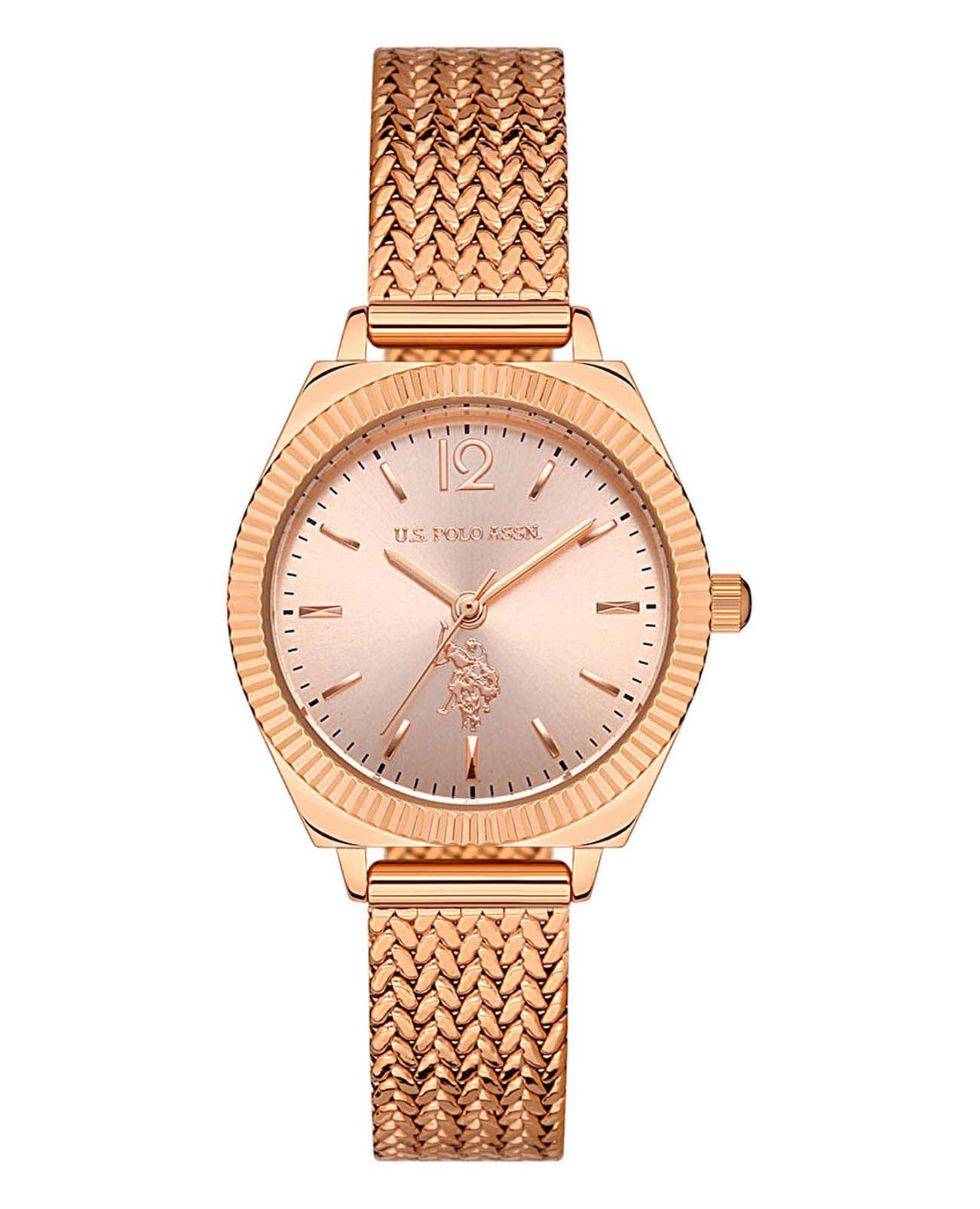 Женские часы U.S. Polo Assn. Stile USPA2062-03, кварцевый механизм с высокой точностью. Минеральное стеклоМинеральное стеклоМинеральное стекло представляет собой искусственно выращенный минерал кварца. Такое стекло отличается особой устойчивостью к повреждениям и царапинам. Уступает по некоторым качествам сапфировому стеклу. устойчивое к появлению царапин, обладающее высокой прозрачностью. Корпус изготовлен из нержавеющей стали с IP-покрытиемIP-покрытиеМетод ионного напыления. Демонстрирует повышенную устойчивость к истиранию, окислению и химическим веществам. Под воздействием высокого давления и температуры около 1500°C молекулы металла надёжно соединяются с частицами корпуса часов.. Класс водозащиты: 50 метров, позволит защитить корпус от случайных брызг или капель дождя. Стальной плетеный браслет с IP-покрытиемIP-покрытиеМетод ионного напыления. Демонстрирует повышенную устойчивость к истиранию, окислению и химическим веществам. Под воздействием высокого давления и температуры около 1500°C молекулы металла надёжно соединяются с частицами корпуса часов. на раскладном замкеРаскладной замокДанный вариант застежки используется только на часах с металлическим браслетом. Отличительная особенность такого крепления в том, что длина браслета становится универсальной и вы можете самостоятельно отрегулировать нужный вам размер – застежка просто двигается по браслету часов..