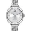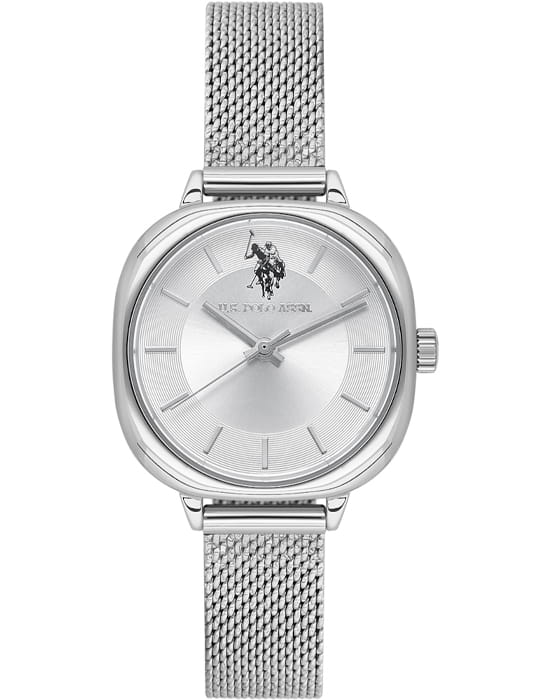 Женские часы U.S. Polo Assn. USPA2087-01 кварцевый механизм с высокой точностью. Минеральное стеклоМинеральное стеклоМинеральное стекло представляет собой искусственно выращенный минерал кварца. Такое стекло отличается особой устойчивостью к повреждениям и царапинам. Уступает по некоторым качествам сапфировому стеклу. устойчивое к появлению царапин, обладающее высокой прозрачностью. Корпус изготовлен из нержавеющей стали. Класс водозащиты: 30 метров, позволит защитить корпус от случайных брызг или капель дождя. Стальной браслет миланского плетения на раскладной застёжкеРаскладная застёжкаТакой тип застёжки используется только на браслетах из металла. Она никогда не раскрывается полностью, происходит разделение на 2 и более частей. Раскладывающая застёжка снизит вероятность потери часов к минимуму.. Неподвижный безельБезельВнешний ободок, закрепляющий стекло. В спортивных часах так называется поворотное кольцо с делениями на циферблате, выполняет роль таймера – замеряет отрезки времени на шкале. Неподвижный безель – элемент декора. Однонаправленно вращающийся безель на дайверских часах позволяет фиксировать моменты погружения и выныривания на поверхность.
