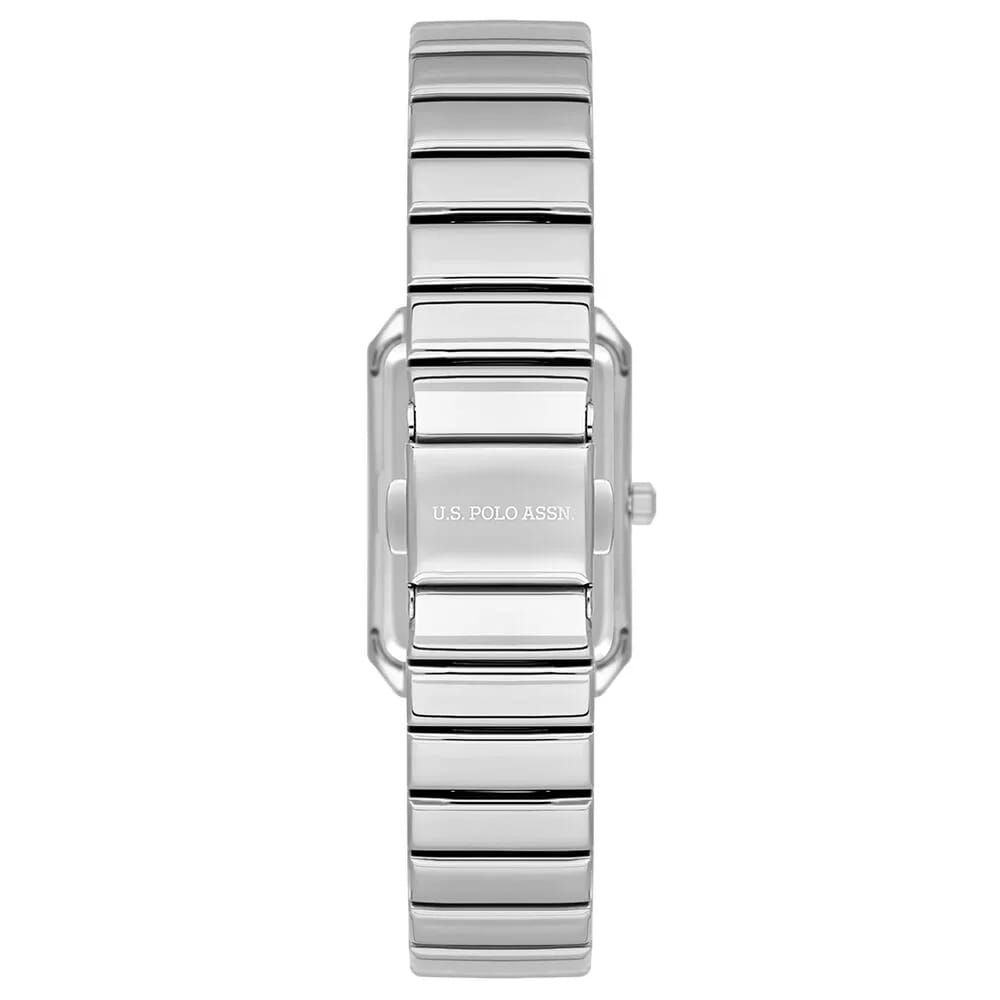 Женские наручные часы U.S. Polo Assn. Stile USPA2108-01 — это стильный и лаконичный аксессуар, выполненный в форме квадрата. Модель изготовлена из стали серебристого цвета, а безельБезельВнешний ободок, закрепляющий стекло. В спортивных часах так называется поворотное кольцо с делениями на циферблате, выполняет роль таймера – замеряет отрезки времени на шкале. Неподвижный безель – элемент декора. Однонаправленно вращающийся безель на дайверских часах позволяет фиксировать моменты погружения и выныривания на поверхность. украшен изысканными кристаллами, придающими часам роскошный вид. Циферблат с лаконичными центральными часовой и минутной стрелками. Защиту циферблата обеспечивает минеральное стеклоМинеральное стеклоМинеральное стекло представляет собой искусственно выращенный минерал кварца. Такое стекло отличается особой устойчивостью к повреждениям и царапинам. Уступает по некоторым качествам сапфировому стеклу., устойчивое к мелким повреждениям. Часы оснащены кварцевым механизмом, гарантирующим точность и минимальное обслуживание. Водонепроницаемость 3 АТМ позволяет использовать часы в повседневных условиях — при мытье рук или под лёгким дождём. Браслет выполнен из стали и оснащён раскладной застёжкойРаскладная застёжкаТакой тип застёжки используется только на браслетах из металла. Она никогда не раскрывается полностью, происходит разделение на 2 и более частей. Раскладывающая застёжка снизит вероятность потери часов к минимуму., обеспечивающей комфорт и уверенную фиксацию на запястье. Толщина корпуса составляет 8 мм, а его размер 23 мм, что делает часы компактными и удобными в носке. Эти часы станут универсальным аксессуаром для уверенных в себе женщин, которые ценят сочетание стиля, качества и эстетики — идеальный выбор для повседневного образа и торжественных случаев.
