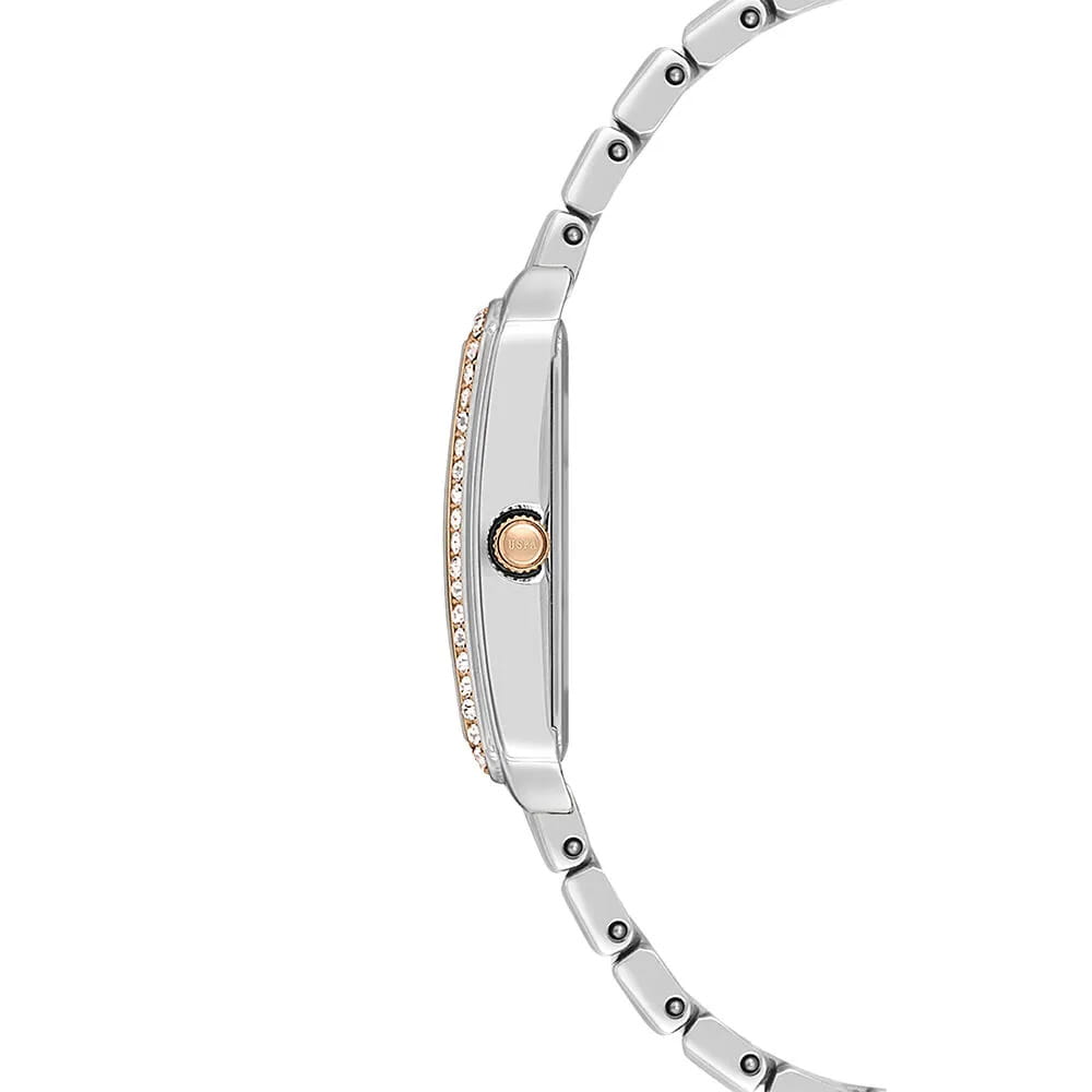 Женские наручные часы U.S. Polo Assn. Stile USPA2108-04 — это стильный и лаконичный аксессуар, выполненный в форме квадрата. Модель изготовлена из стали серебристого цвета, а безельБезельВнешний ободок, закрепляющий стекло. В спортивных часах так называется поворотное кольцо с делениями на циферблате, выполняет роль таймера – замеряет отрезки времени на шкале. Неподвижный безель – элемент декора. Однонаправленно вращающийся безель на дайверских часах позволяет фиксировать моменты погружения и выныривания на поверхность. с IP-покрытиемIP-покрытиеМетод ионного напыления. Демонстрирует повышенную устойчивость к истиранию, окислению и химическим веществам. Под воздействием высокого давления и температуры около 1500°C молекулы металла надёжно соединяются с частицами корпуса часов. украшен изысканными кристаллами, придающими часам роскошный вид. Циферблат с лаконичными центральными часовой и минутной стрелками. Защиту циферблата обеспечивает минеральное стеклоМинеральное стеклоМинеральное стекло представляет собой искусственно выращенный минерал кварца. Такое стекло отличается особой устойчивостью к повреждениям и царапинам. Уступает по некоторым качествам сапфировому стеклу., устойчивое к мелким повреждениям. Часы оснащены кварцевым механизмом, гарантирующим точность и минимальное обслуживание. Водонепроницаемость 3 АТМ позволяет использовать часы в повседневных условиях — при мытье рук или под лёгким дождём. Браслет выполнен из стали с IP-покрытиемIP-покрытиеМетод ионного напыления. Демонстрирует повышенную устойчивость к истиранию, окислению и химическим веществам. Под воздействием высокого давления и температуры около 1500°C молекулы металла надёжно соединяются с частицами корпуса часов. и оснащён раскладной застёжкойРаскладная застёжкаТакой тип застёжки используется только на браслетах из металла. Она никогда не раскрывается полностью, происходит разделение на 2 и более частей. Раскладывающая застёжка снизит вероятность потери часов к минимуму., обеспечивающей комфорт и уверенную фиксацию на запястье. Толщина корпуса составляет 8 мм, а его размер 23 мм, что делает часы компактными и удобными в носке. Эти часы станут универсальным аксессуаром для уверенных в себе женщин, которые ценят сочетание стиля, качества и эстетики — идеальный выбор для повседневного образа и торжественных случаев.