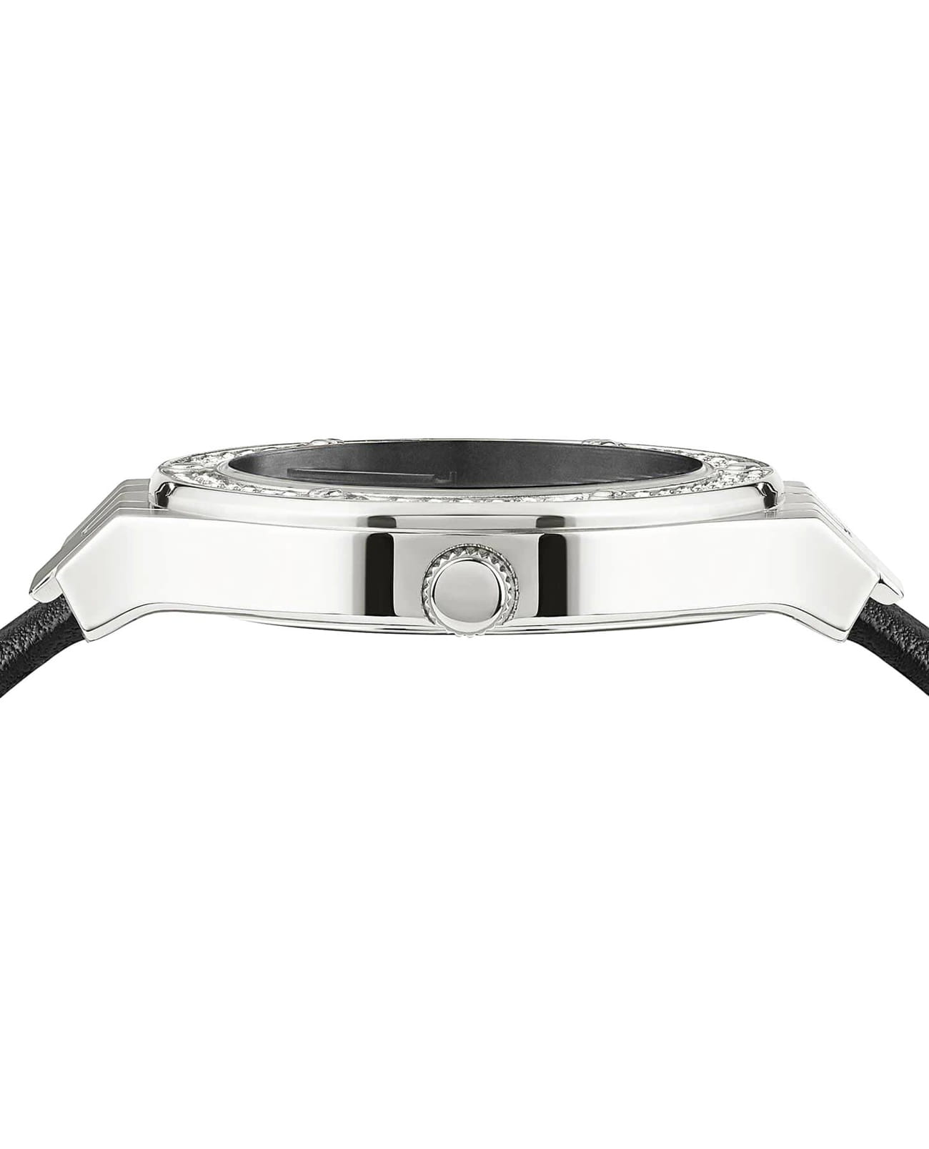 Бесподобные женственные часы окутаю вас ювелирной роскошью, доведя образ до совершенства. Стильные часы Vittoria с круглым стальным корпусом, дополненным планками V-образной формы. Безель инкрустирован кристаллами Сваровски. Циферблат украшен 3d лого в форме головы льва. Часовые метки в виде арабских цифр и штрихов. Кожаный ремешок с классической застежкой.