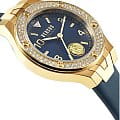 Бесподобные женственные часы окутаю вас ювелирной роскошью, доведя образ до совершенства. Стильные часы Vittoria с круглым стальным корпусом, дополненным планками V-образной формы. Безель инкрустирован кристаллами Сваровски. Циферблат украшен 3d лого в форме головы льва. Часовые метки в виде арабских цифр и штрихов. Кожаный ремешок с классической застежкой.