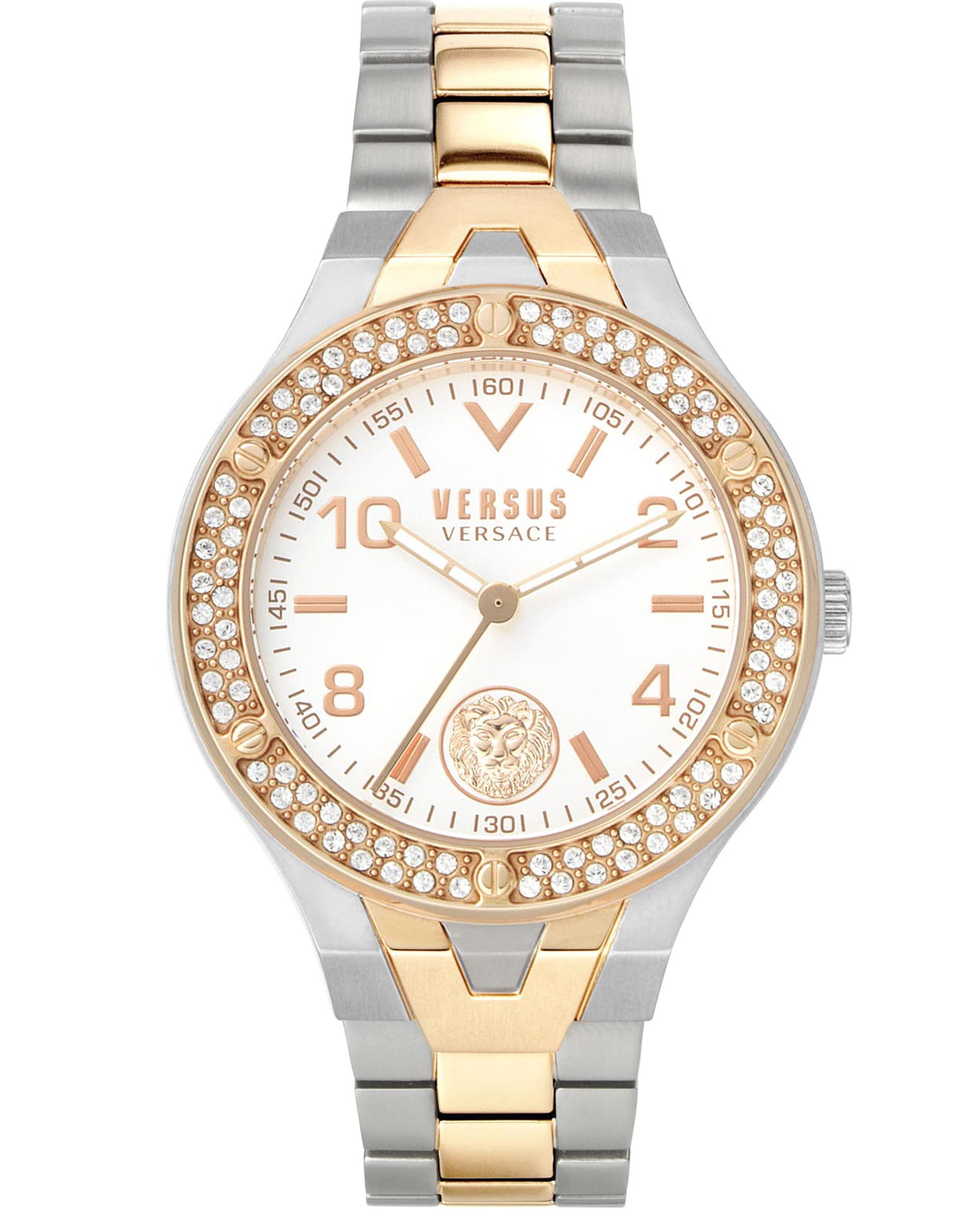 Бесподобные женственные часы окутаю вас ювелирной роскошью, доведя образ до совершенства. Стильные часы Vittoria с круглым стальным корпусом дополненным планками V-образной формы. Безель инкрустирован кристаллами Сваровски. Циферблат украшен 3d лого в форме головы льва. Часовые метки в виде арабских цифр и штрихов. Кожаный ремешок с классической застежкой.