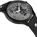 На запястье эти массивные дизайнерские часы смотрятся эффектно, стильно и завораживающе. Они надолго приковывают внимание окружающих. Дизайнерские часы Domus с круглым черным корпусом. Циферблат украшен изящным изображением головы льва. Рифленая заводная головка. Кожаный ремешок декорирован металлическими заклепками.