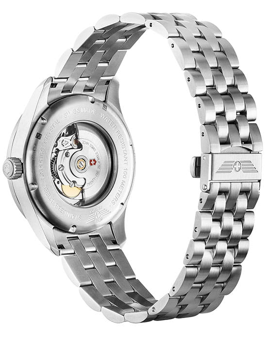 Мужские механические швейцарские часы с сапфировым стеклом Victorinox AirBoss 241888, механический механизм (автоматический калибр) с высокой точностью. Сапфировое стекло устойчивое к появлению царапин, обладающее высокой прозрачностью. Класс водозащиты: 100 метров, позволит плавать, нырять и заниматься другими водными видами спорта. Корпус часов изготовлен из стали, цвета.