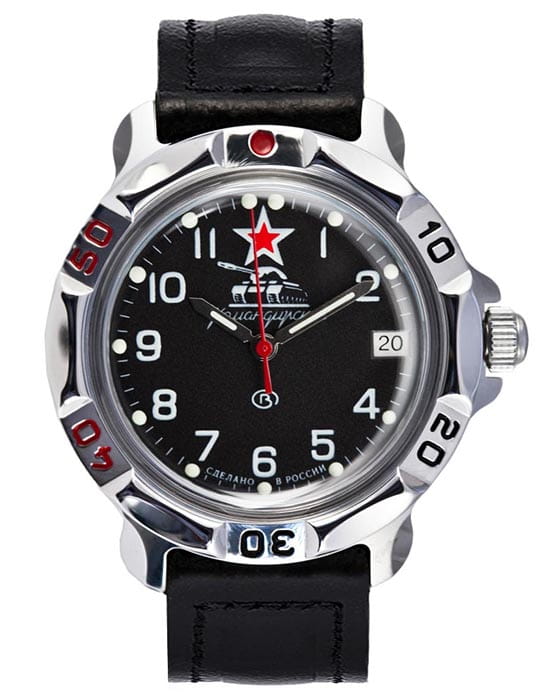 Легендарные Командирские часы с обновленным дизайном циферблата. Российские часы с историей. Командирские Классика. В механизме 17 камней. Запас хода 36 часов. Противоударное устройство оси баланса. Вращающийся безель. Завинчивающаяся заводная головка с защитой.