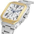 Мужские кварцевые часы Wainer WA.18090-E — это стильный аксессуар, сочетающий в себе швейцарское качество и изысканный дизайн. Модель выполнена в квадратной форме из стали 316L с частичным PVD-покрытиемPVDУльтратонкое покрытие наносится в технике вакуумного напыления, сочетает в себе нитрид титана особой прочности со слоем золота или оксида хрома. Несёт в себе декоративную или защитную функцию., что придаёт ей благородный внешний вид и устойчивость к царапинам. Корпус украшен декоративными винтами, подчёркивая внимание к деталям. Циферблат белого цвета дополнен штриховыми метками и римскими цифрами, а секундная стрелка на конце декорирована буквой W, добавляя модели индивидуальности. Защиту механизма обеспечивает сапфировое стеклоСапфировое стеклоПрочный и надёжный материал из кристалла сапфира синтетического происхождения, характеризующийся особой твёрдостью и устойчивостью к царапинам и повреждениям., устойчивое к повреждениям. Окошко даты расположено в положении 4 часов, а гранёная заводная головка с защитой оснащена фирменным логотипом. Браслет из стали 316L шириной 22 мм оснащён Раскладная застёжкаРаскладная застёжкаТакой тип застёжки используется только на браслетах из металла. Она никогда не раскрывается полностью, происходит разделение на 2 и более частей. Раскладывающая застёжка снизит вероятность потери часов к минимуму., обеспечивающей комфорт и надёжную фиксацию на запястье. Водонепроницаемость позволяет использовать модель при мытье рук или под лёгким дождём. Стрелки с люминесцентным покрытиемЛюминесцентное покрытиеПозволяет считывать показания времени в темноте. Производители наносят на стрелки, часовые индексы, безель или поверхность циферблата светонакопительный состав, дающий холодное свечение. обеспечивают отличную читаемость даже в условиях слабого освещения. Механизм калибра Ronda 5030.D гарантирует точность хода и надёжность. Эти часы станут универсальным аксессуаром для тех, кто ценит сочетание стиля, функциональности и швейцарского мастерства — идеальный выбор для повседневной носки и торжественных случаев.