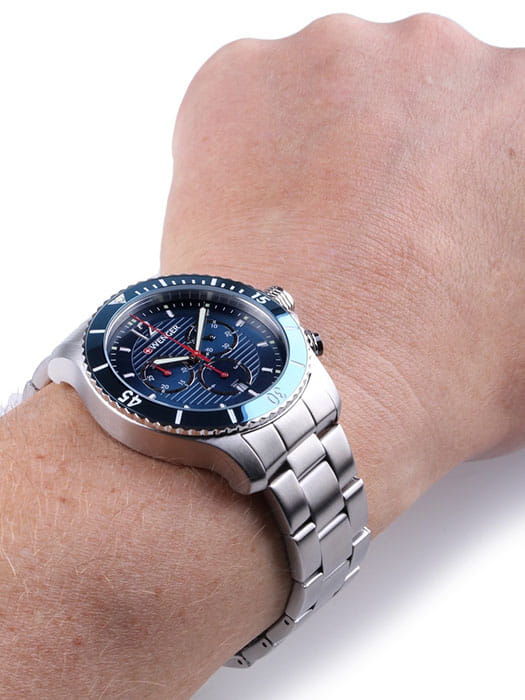 Мужские швейцарские часы с хронографом Wenger 01.0643.111, кварцевый механизм с высокой точностью. Класс водозащиты: 200 метров, позволит плавать, нырять и заниматься другими водными видами спорта. Корпус часов изготовлен из стали, цвета.